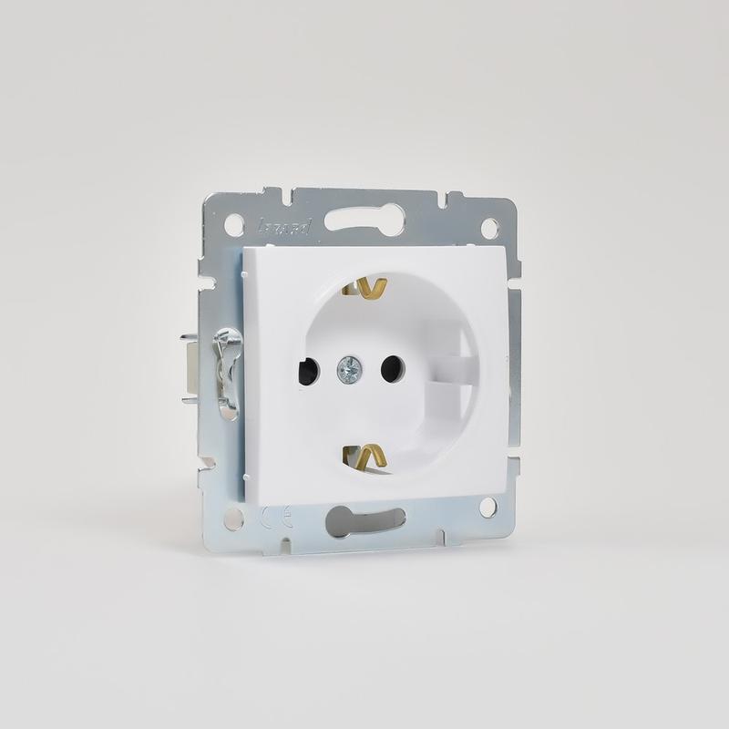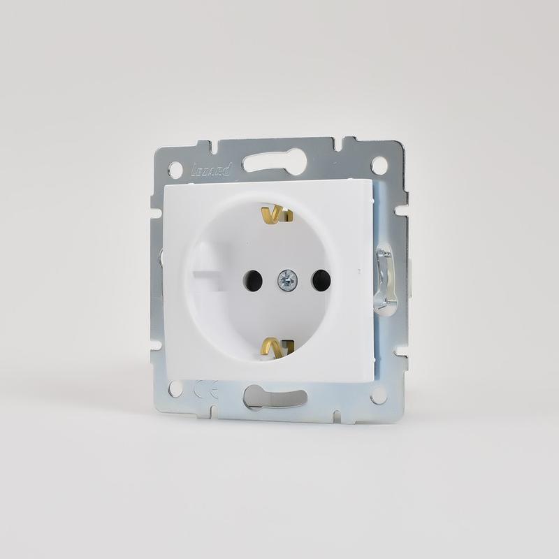 Механизм розетки 1-м СП KARINA защ. шторки с заземл. термопласт бел. LEZARD 707-0288-124B