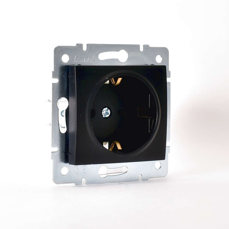 Механизм розетки 1-м СП KARINA защ. шторки с заземл. термопласт черн. бархат LEZARD 707-4288-124B