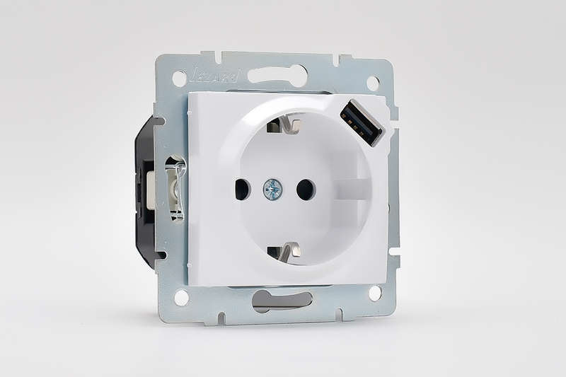 Механизм розетки 1-м СП KARINA 16А с з/к + USB разъем бел. LEZARD 707-0288-181