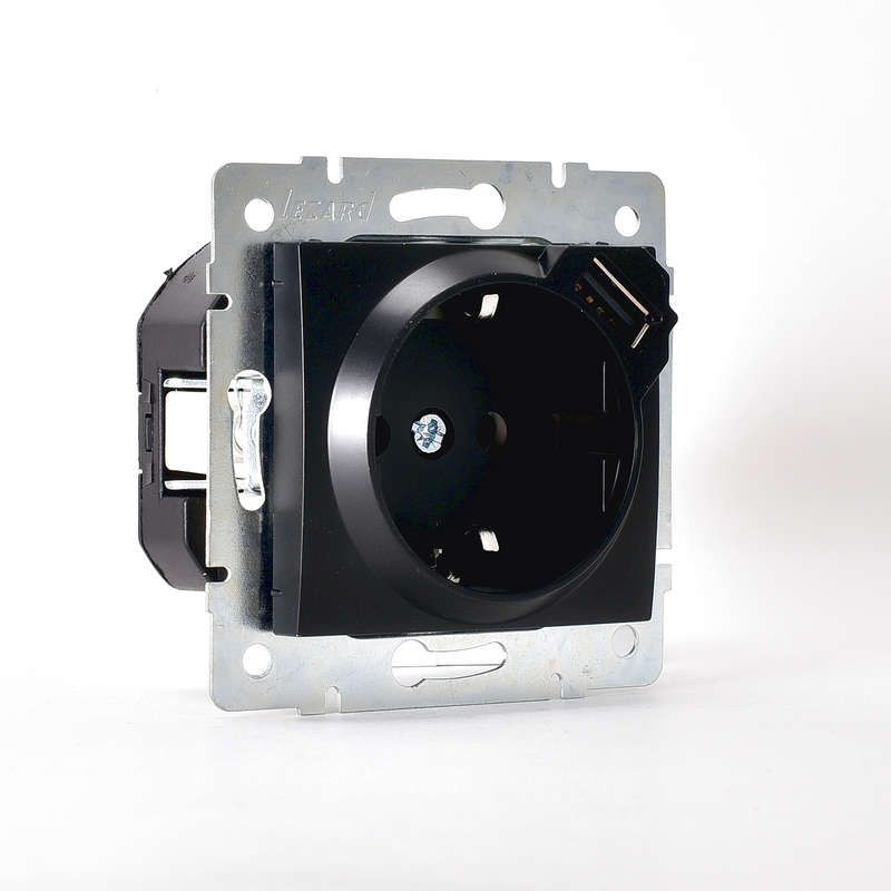 Механизм розетки 1-м СП KARINA 16А с з/к + USB разъем черн. бархат LEZARD 707-4288-181