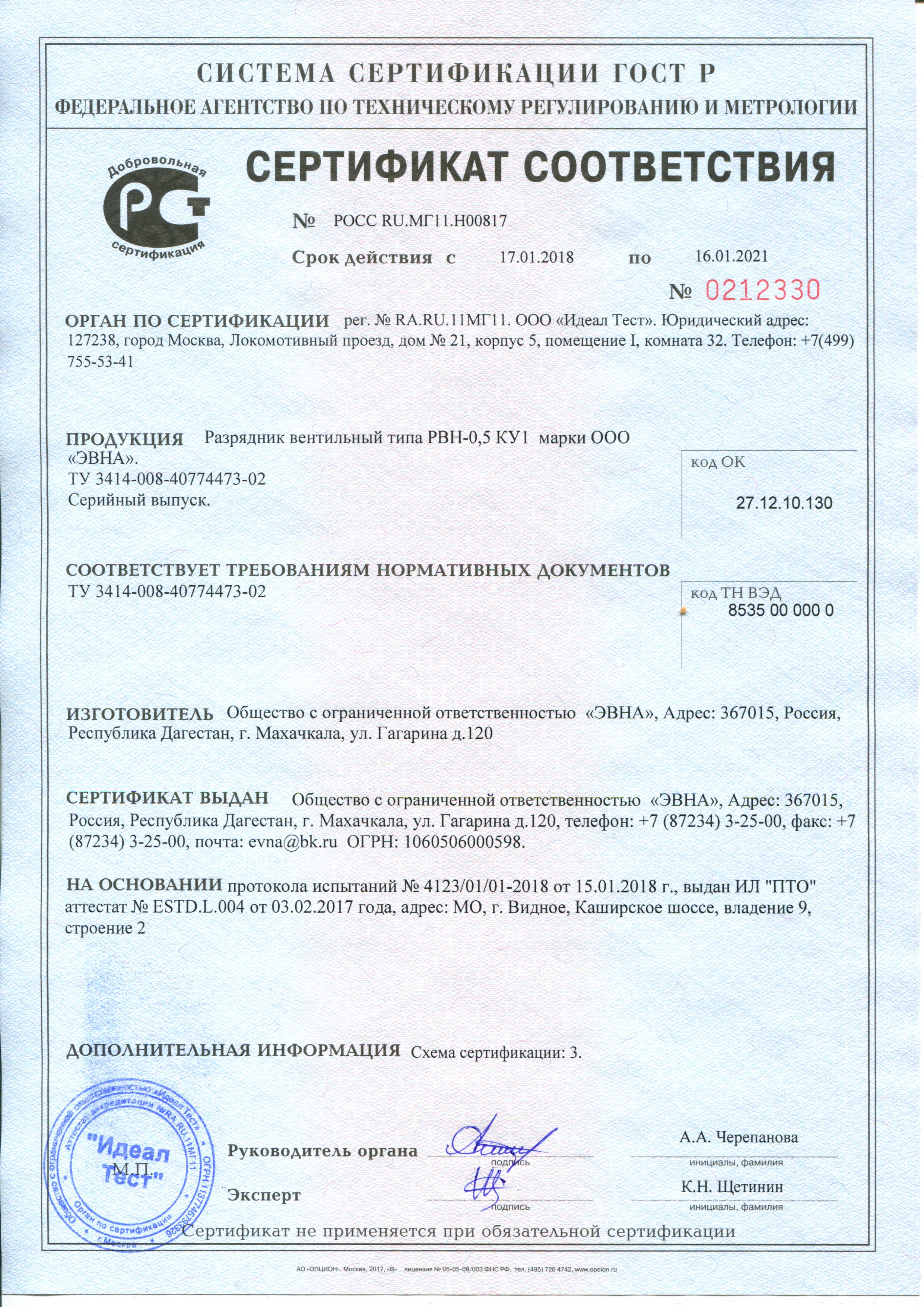 | Уровень напряжения защиты, кВ: | 0.5 кВ |